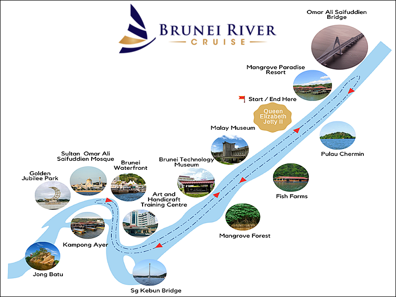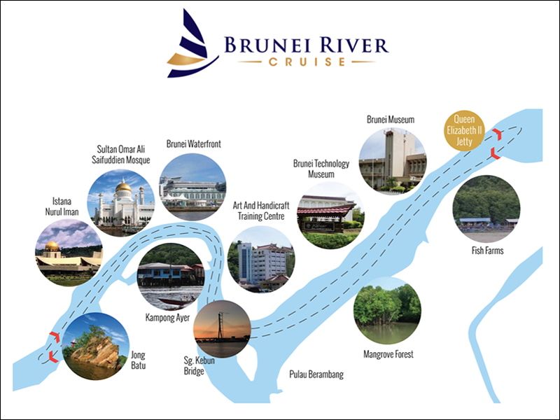 コースは2つあり、「ルートA」では水上集落やオマールモスクなどの施設を、「ルートB」では東南アジアで最も長い橋のスルタン・ハジ・オマール・アリ・サイフディン橋を船からご覧になる事ができます。